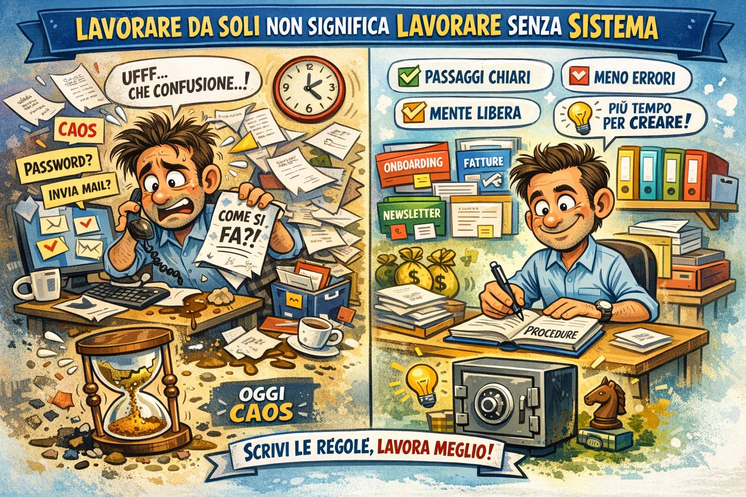 Edizione n. 224 del 31 marzo 2026 Lavorare da soli non significa lavorare senza sistema Chi lavora in proprio spesso non attribuisce importanza alla documentazione delle procedure interne. Finché l’attività resta piccola, ci si abitua a rifare ogni volta gli stessi passaggi: cercare una password, riscrivere una mail, ricostruire da zero una procedura già fatta molte volte. Non sembra un grande problema, ma col tempo è una dispersione continua di energie. Anche chi lavora da solo dovrebbe...